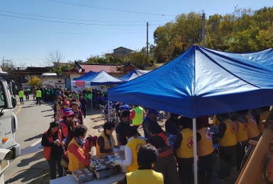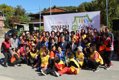 [예천군] 찾아라! 예천 행복마을 5호 활동 실시 - 일자 : 2018. 10. 19.(금) - 장소 : 보문면 기곡2리 마을 - 참가단체 : 200여명(23개 자원봉사 단체회원) - 주요내용 ○ 찾아라! 예천 행복마을 5호 현판식 ○ 재능나눔 자원봉사 활동(도배장판 교체, 벽화 그리기, 우체통 만들기, EM탈취제 만들기, 방충망 교체, 이ㆍ미용봉사, 먹거리 나눔, 이불세탁, 공연지원, 전기수리, 의료지원, 장수사진촬영 등)